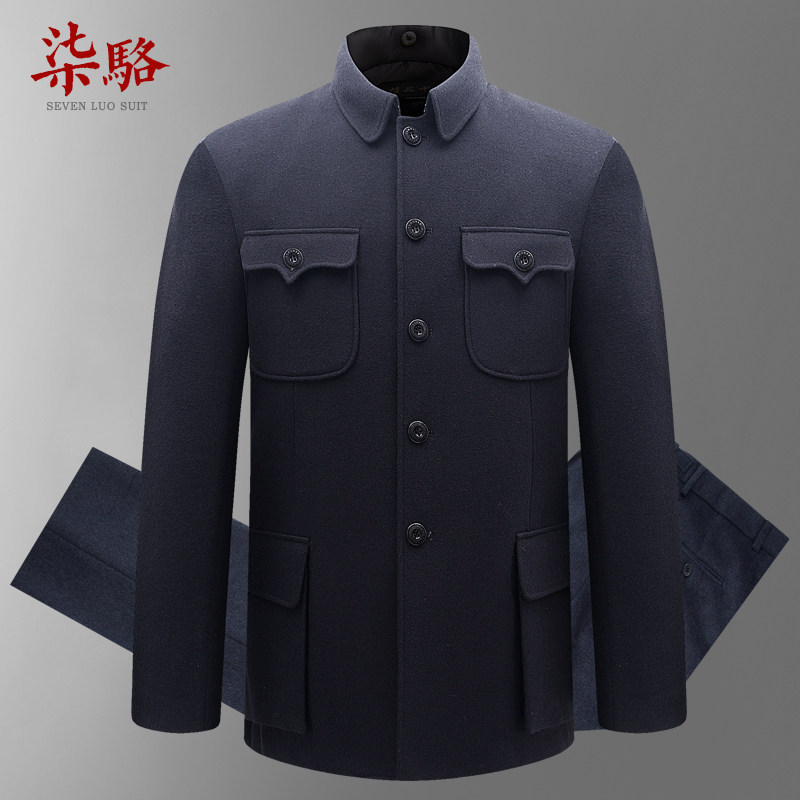 羊毛呢子爸爸中山装男套装中山服装中国风中老年人爷爷春秋外套