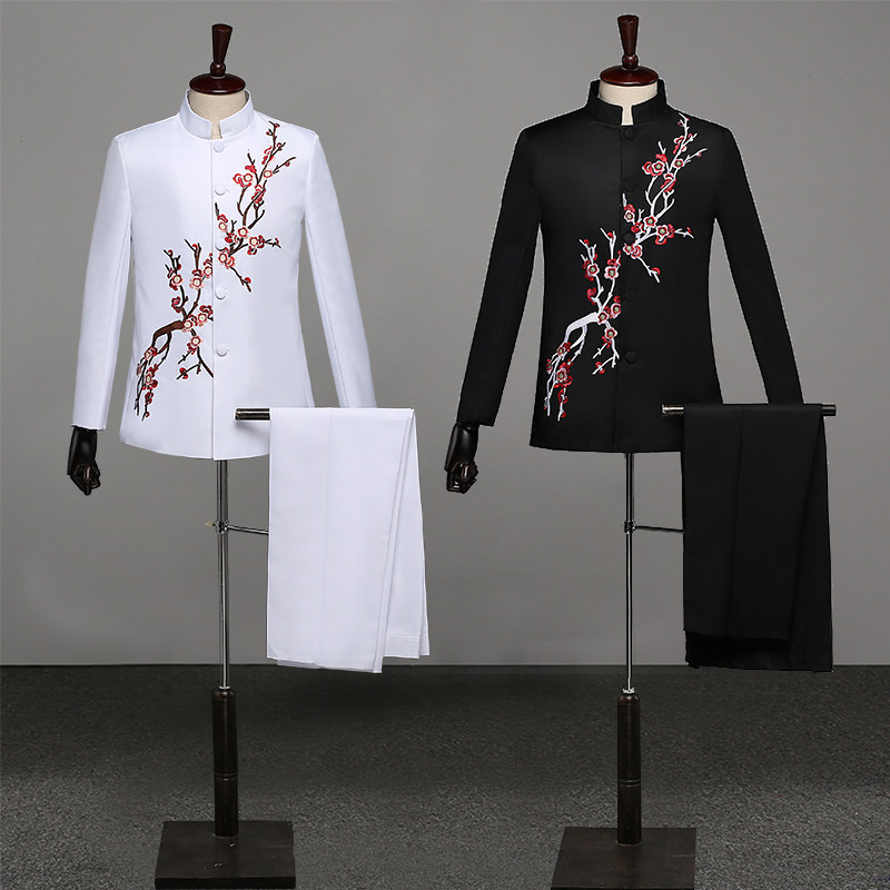 特价新款改良绣花中山装演出服男单位红歌合唱男士主持年会表演服