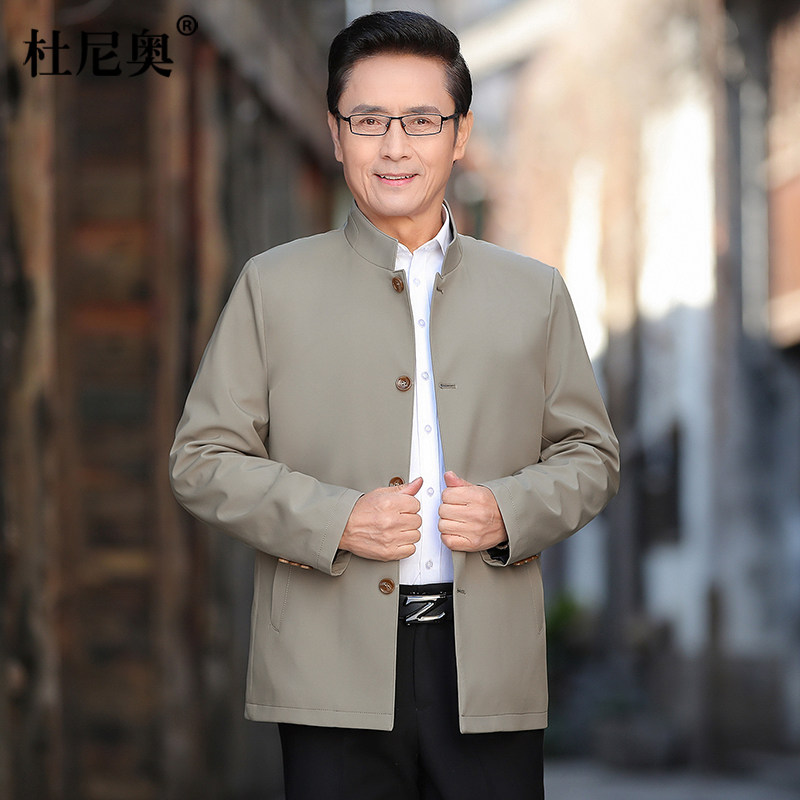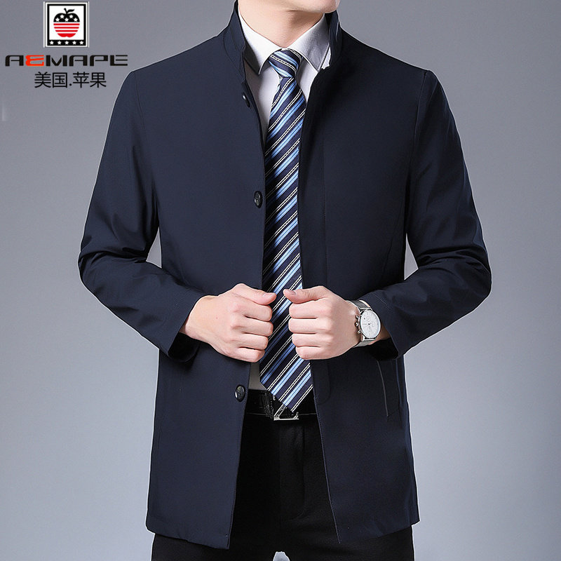 美国苹果春秋季男士中年夹克外套爸爸装立领休闲风衣男商务中山装
