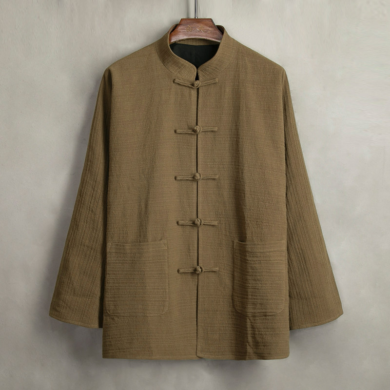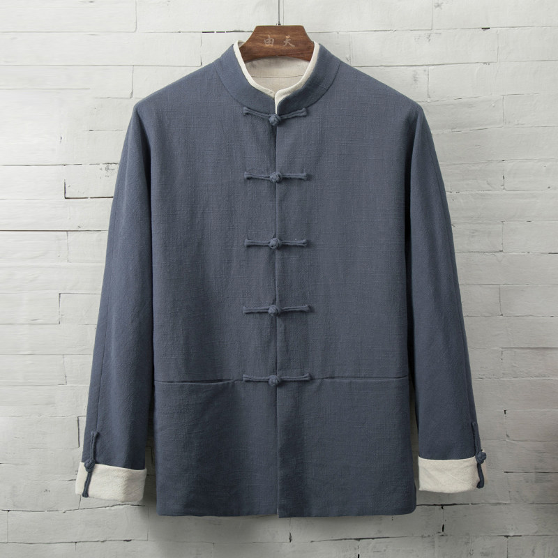 新中式唐装男款棉麻长袖外套春秋季中国风中式复古男装盘扣中山装