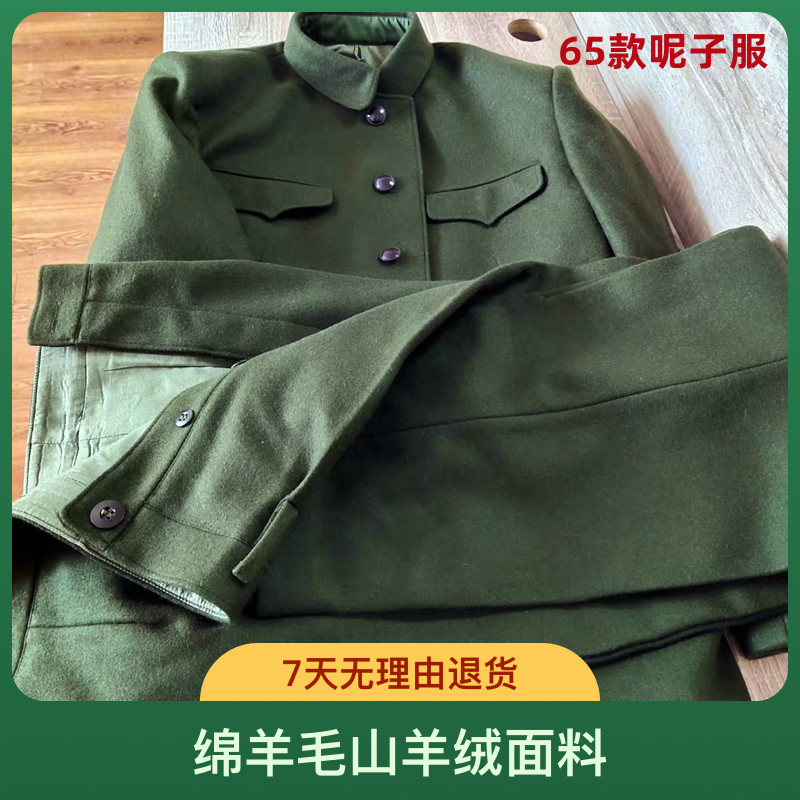 老式胶木扣马裤呢上衣 中老年爸爸中山装高档毛料马裤呢冬季上衣