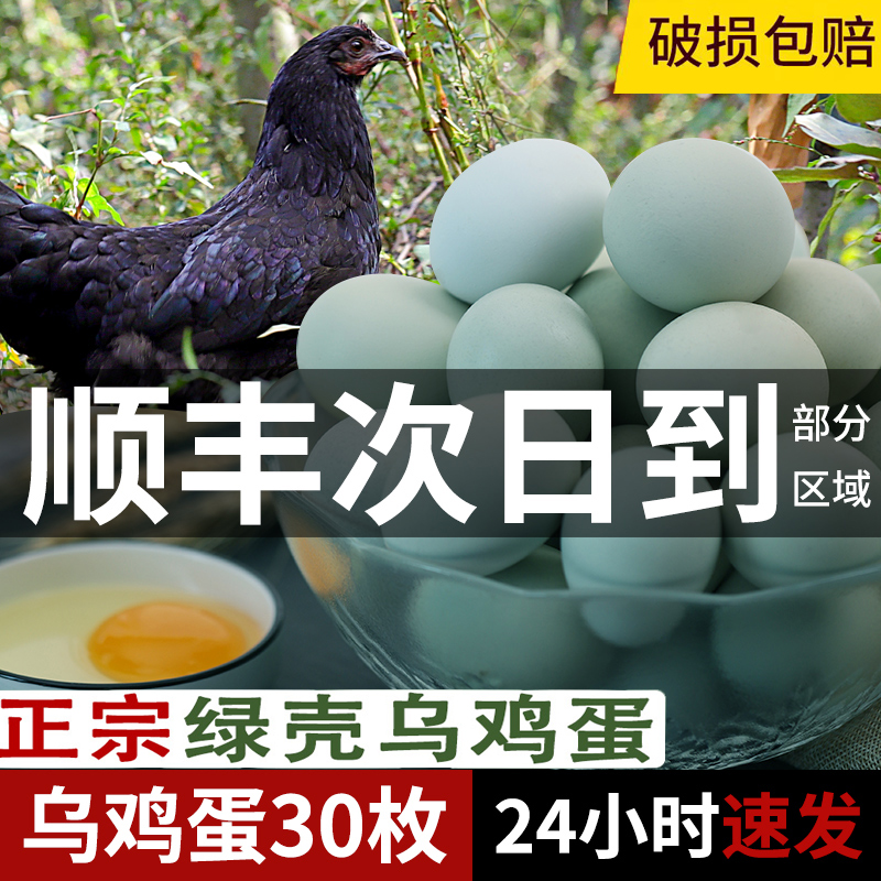 绿壳农家散养30枚土鸡蛋乌鸡蛋新鲜正宗天然当天草鸡蛋月子蛋包邮