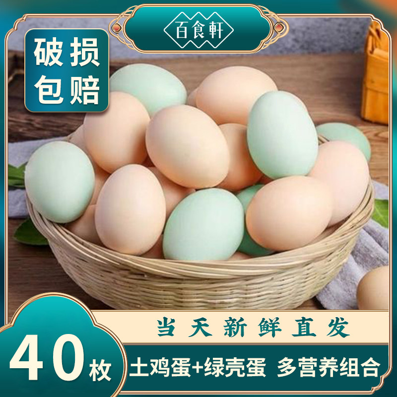 鸡蛋绿壳土鸡蛋农家散养1:4混合蛋笨柴鸡蛋孕妇乌鸡蛋40枚整箱禽