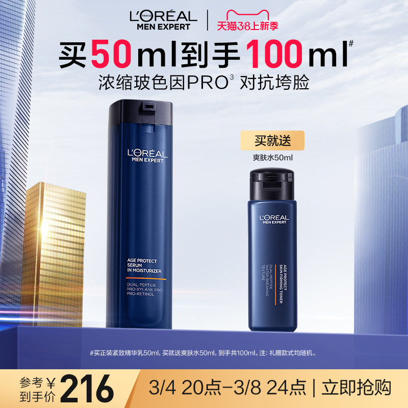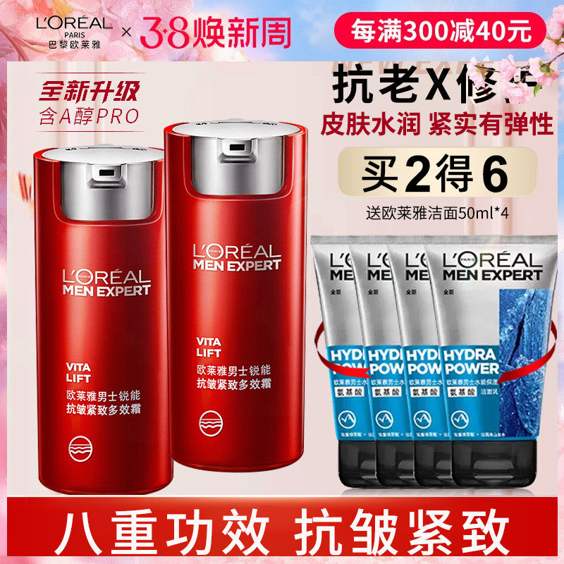 欧莱雅男士支撑瓶A醇玻色因脸部精华液补水保湿紧致擦脸乳液护肤