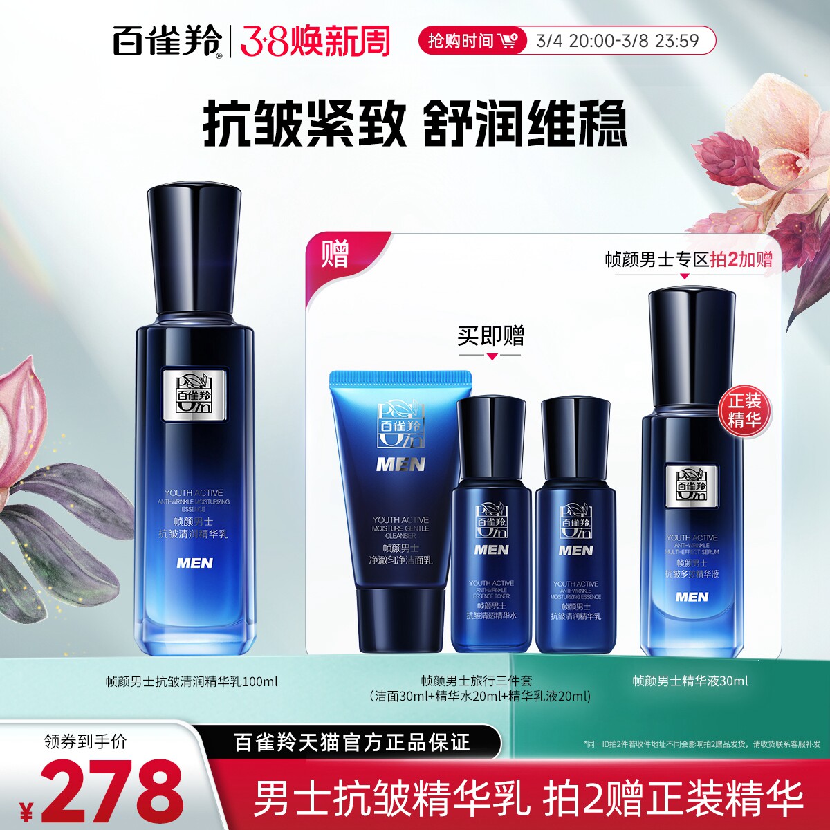 百雀羚帧颜男士精华乳淡纹紧致保湿清爽抗初老乳液男士专用正品