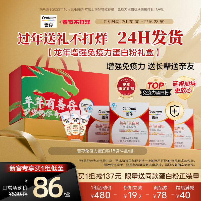 汤臣倍健蛋白质粉乳清中老年免疫球蛋白成人营养品增强免疫力年货