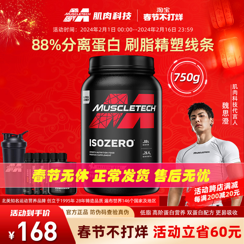 肌肉科技分离乳清蛋白粉750g双蛋白粉高纯WHEY蛋白质低脂健身增肌