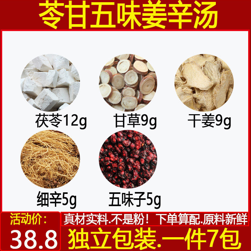苓甘五味姜辛汤中药材原材料茯苓12甘草9干姜9细辛5五味子5煮水
