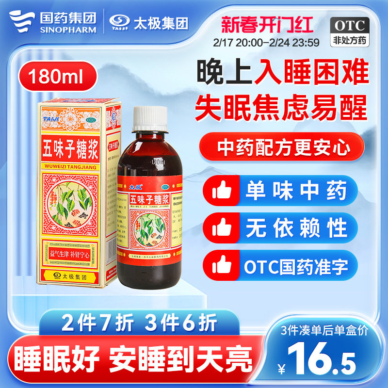 太极五味子糖浆口服液糖桨睡眠特效药失眠专用安神助眠改善睡眠