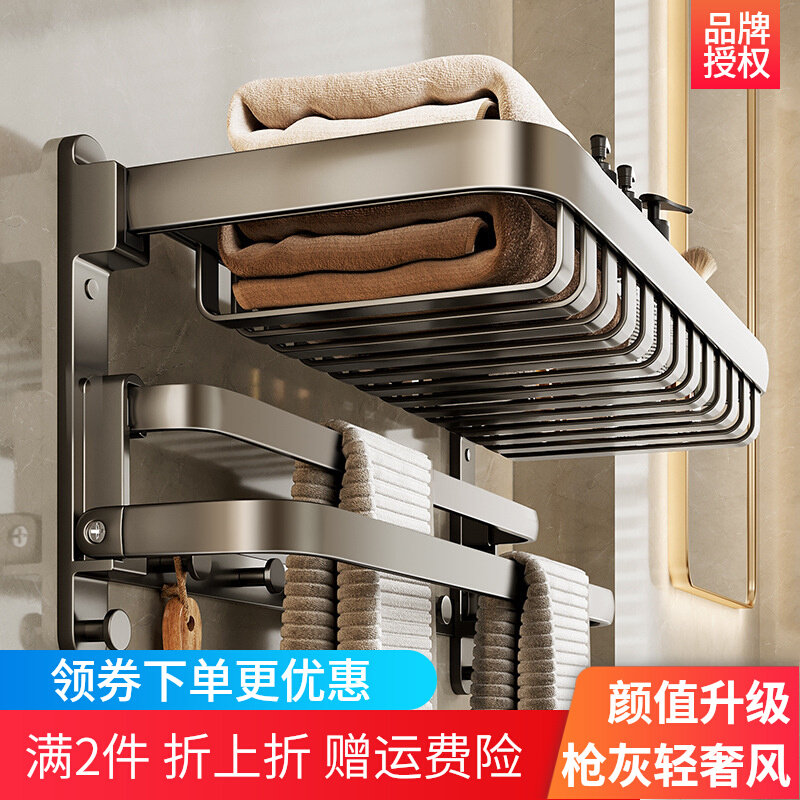枪灰色毛巾架免打孔折叠浴巾架卫生间浴室置物架厕所卫浴五金挂件