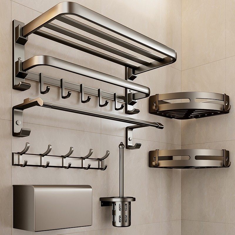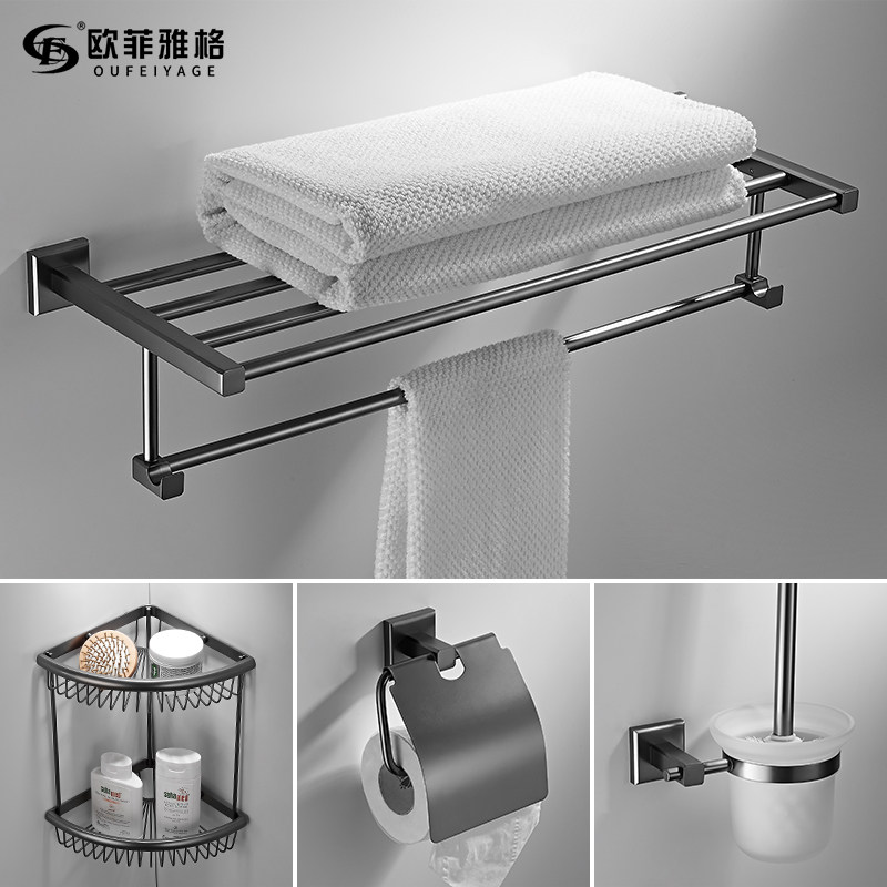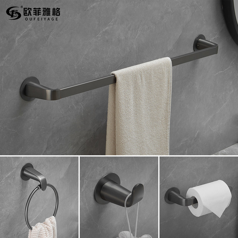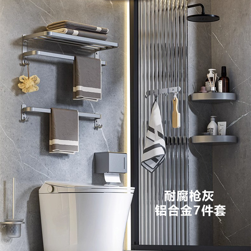 枪灰色高端卫生间浴巾架太空铝五金卫浴挂件套装组合酒店毛巾架