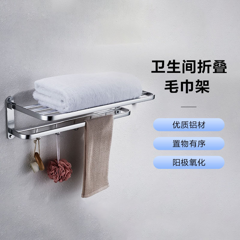 枪灰毛巾架免打孔卫生间置物架太空铝五金挂件浴室三折叠浴巾架子
