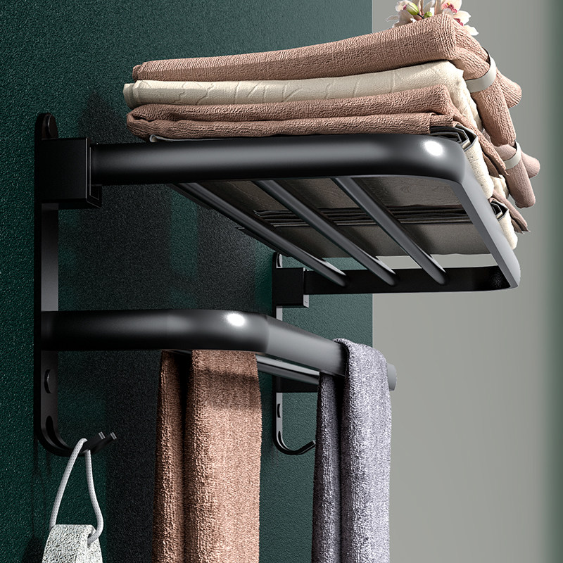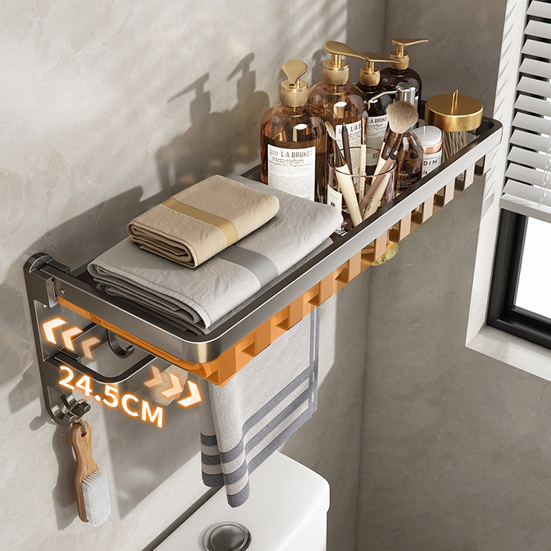枪灰色浴巾架 免打孔太空铝毛巾架卫生间五金卫浴挂件折叠置物架