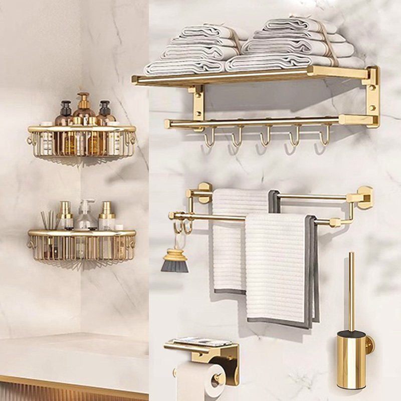 卫生间金色轻奢风不锈钢浴巾架厕所挂件套装浴室毛巾架五金置物架