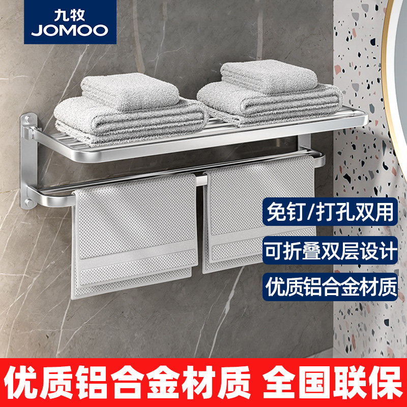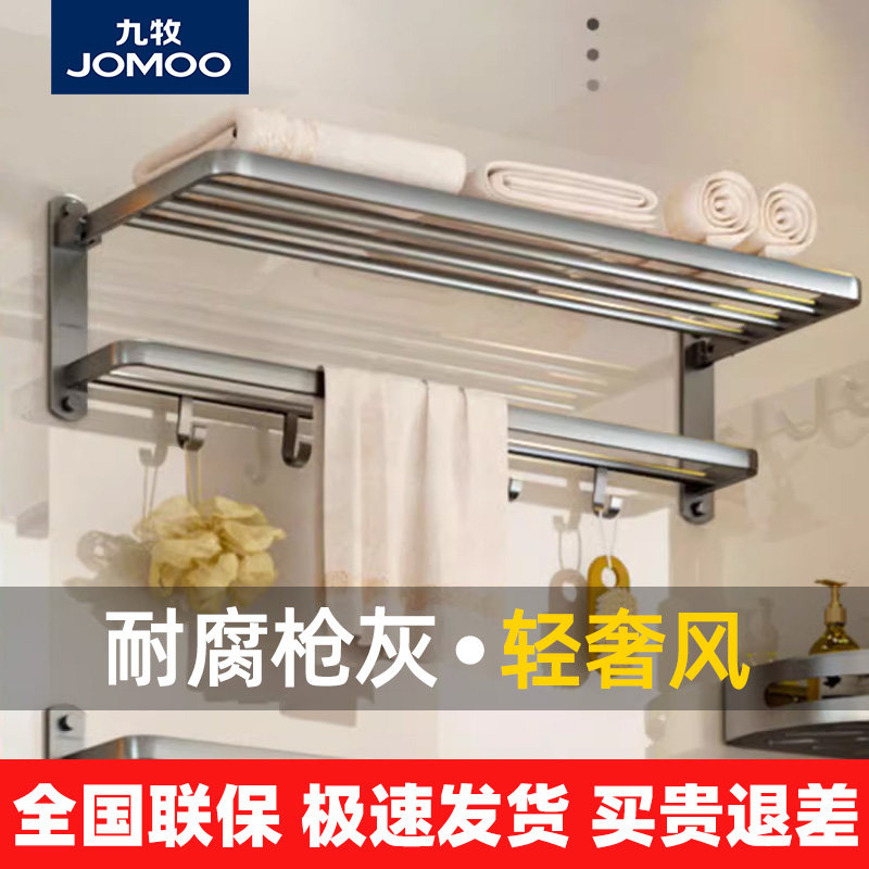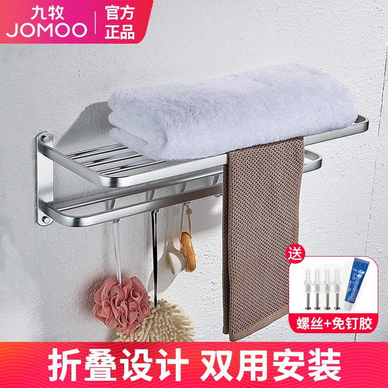 九牧卫浴折叠浴巾架卫生间毛巾架太空铝置物架浴室五金挂件936004