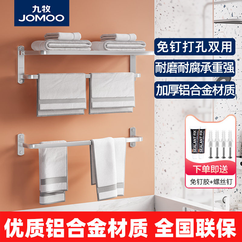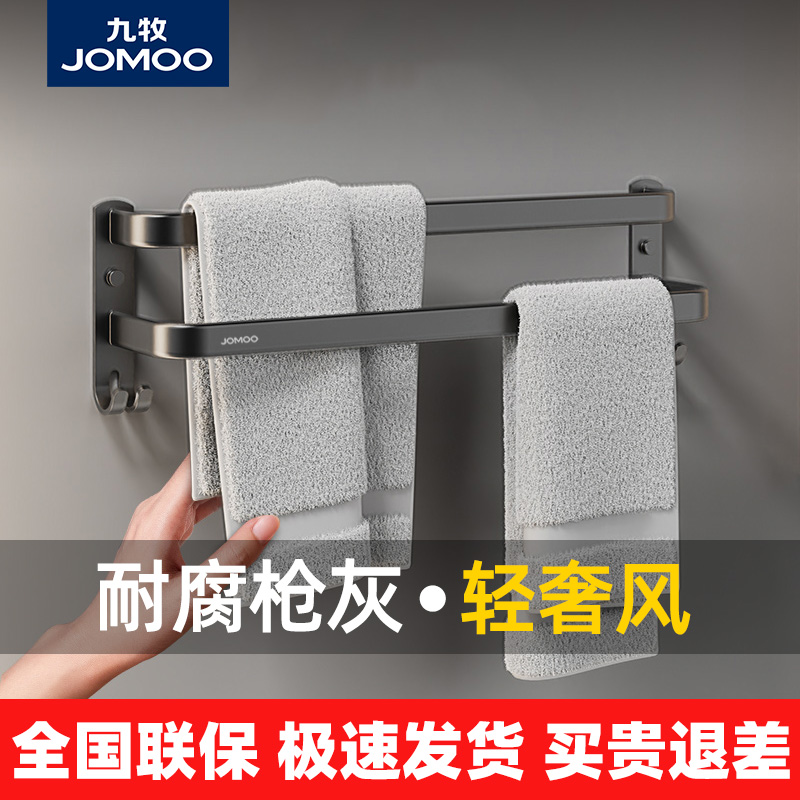 九牧毛巾架免打孔卫生间浴巾架浴室置物架子枪灰色太空铝五金挂件