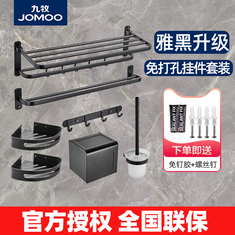 九牧毛巾架卫浴厕所五金挂件套装轻奢太空铝免打孔置物浴室卫生间