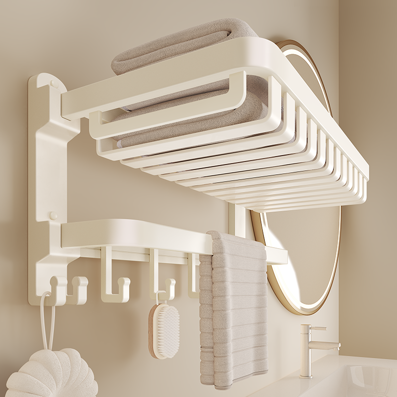 GAOK白色毛巾架浴室折叠浴巾架太空铝免打孔置物架卫浴五金挂件