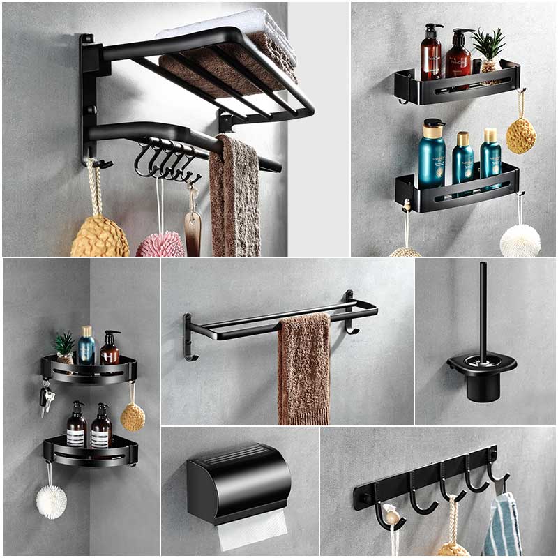 浴室免打孔毛巾架太空铝黑色卫生间置物架壁挂浴巾架五金挂件套装