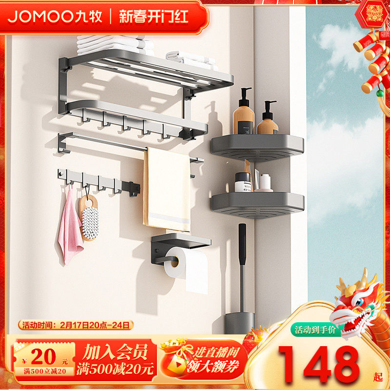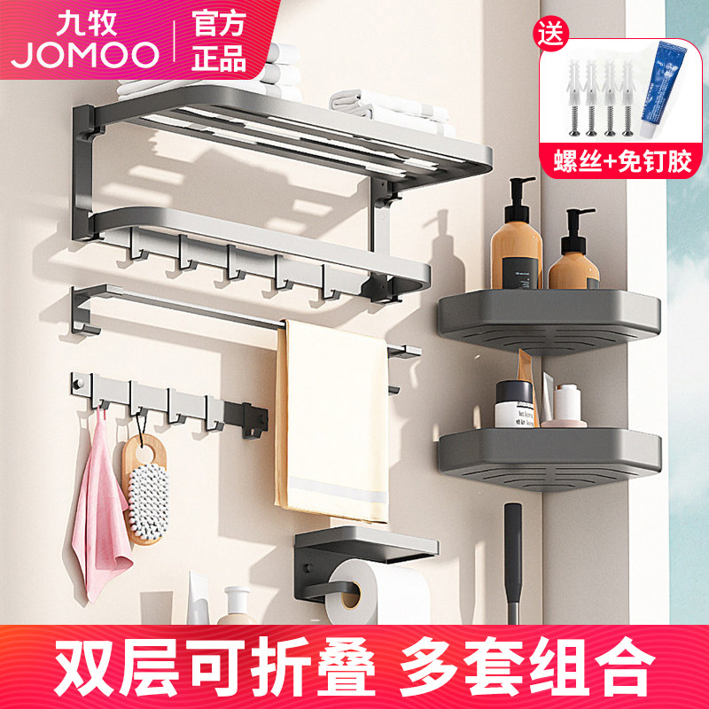 九牧卫浴浴巾架毛巾架卫生间五件套五金挂件收纳浴室置物架太空铝