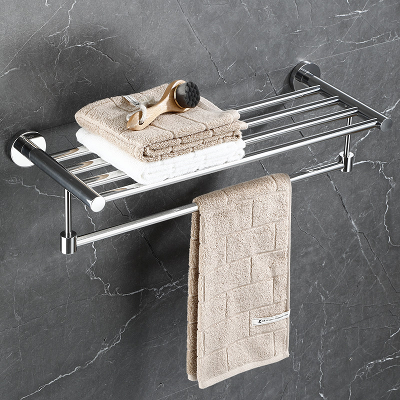 卫生间壁挂轻奢风不锈钢浴巾架卫浴挂件套装浴室毛巾架五金置物架
