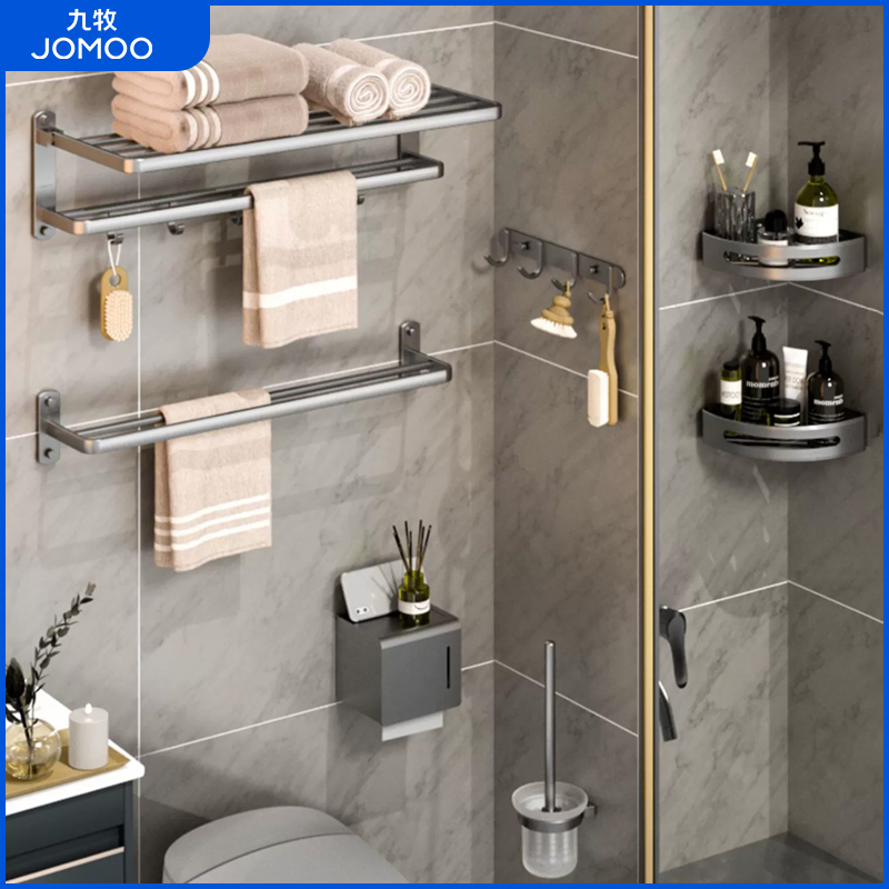 九牧浴巾架枪灰色轻奢五金挂件套装浴室置物架卫生间毛巾架套装