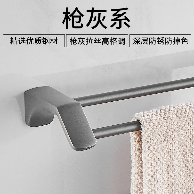卫生间枪灰色毛巾架 不锈钢浴室五金挂件 浴巾架套装免打孔置物架