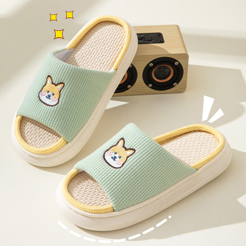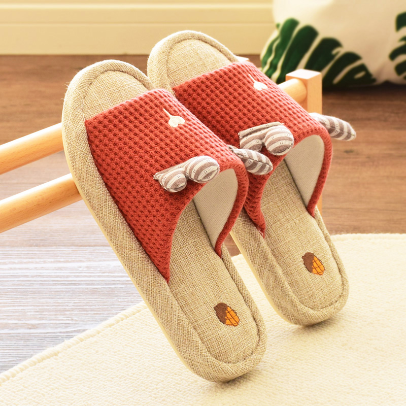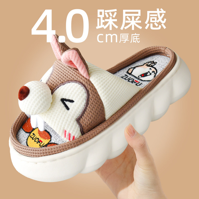 可爱小松鼠亚麻拖鞋女春秋室内居家静音防滑厚底情侣亚麻拖男四季