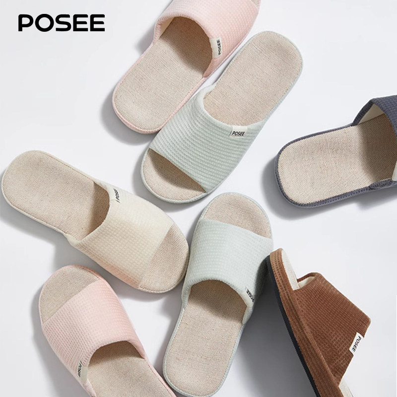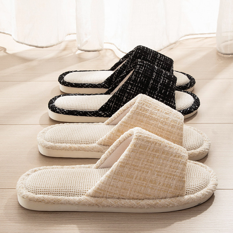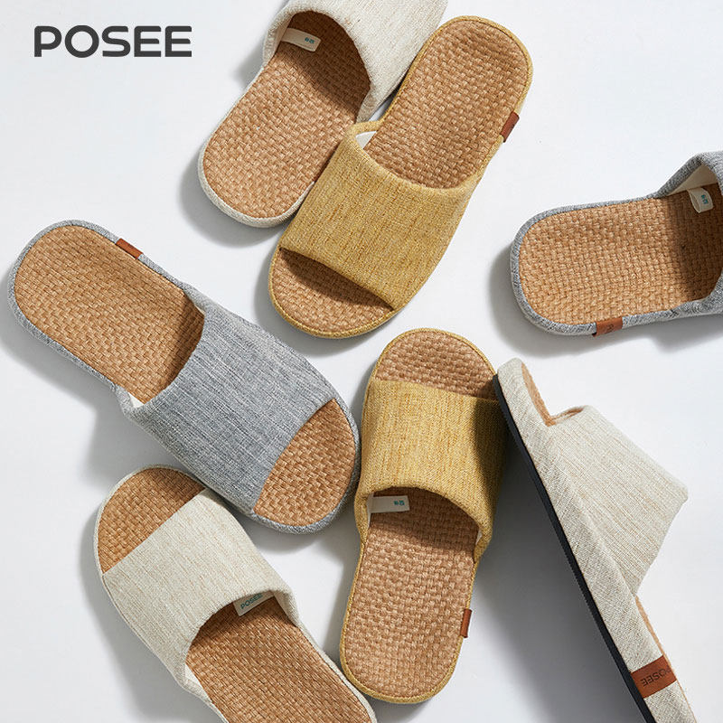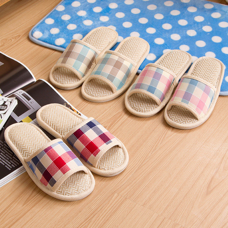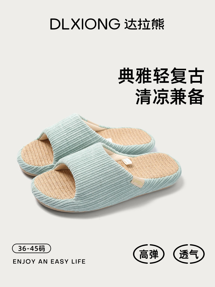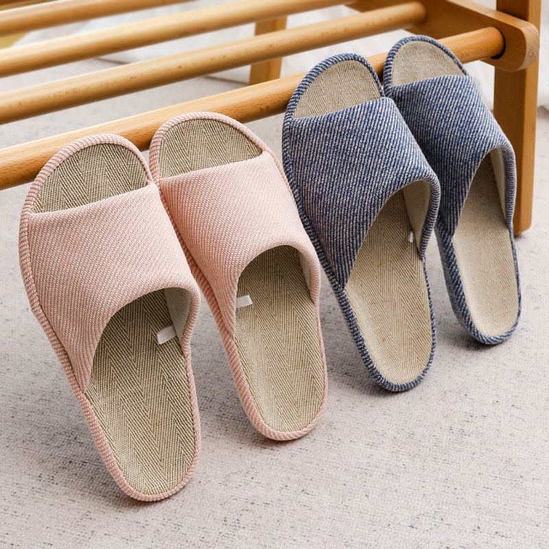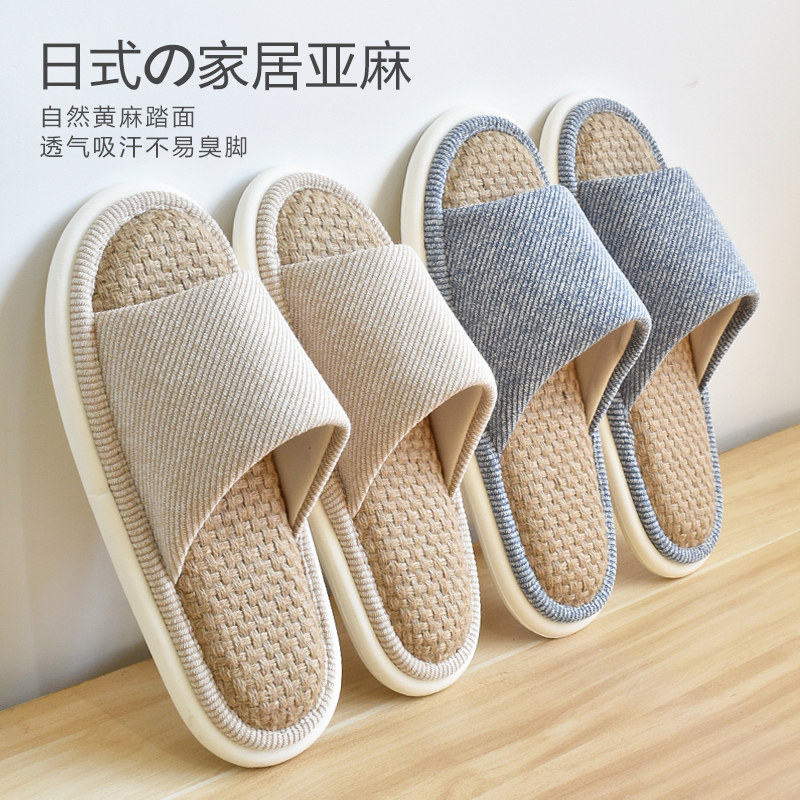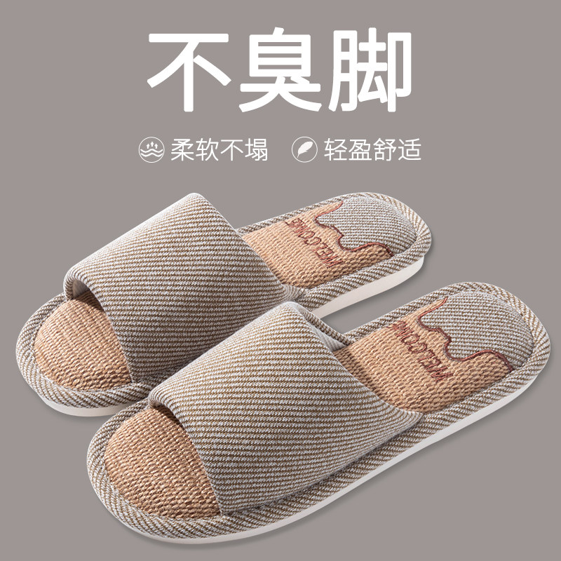 朴西四季通用简约亚麻不臭脚拖鞋女室内家居情侣拖鞋男款家用吸汗