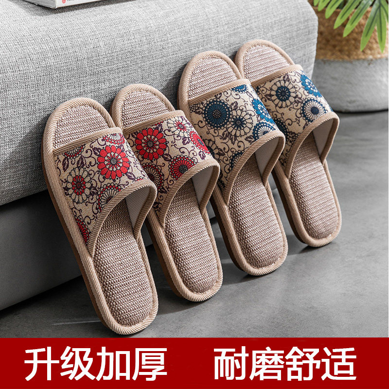 【买一送一】家居亚麻拖鞋女夏情侣室内防滑厚底家用凉拖鞋男夏天