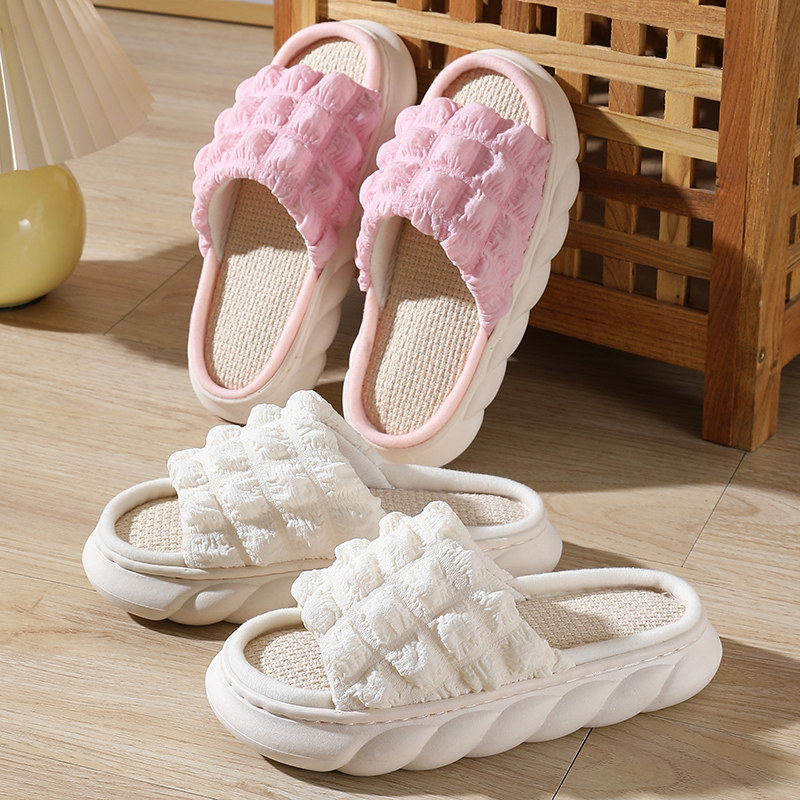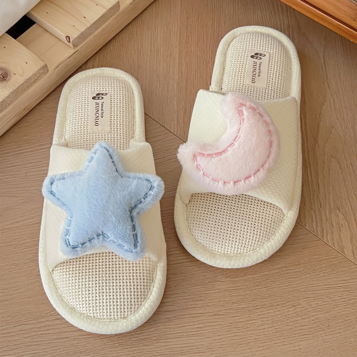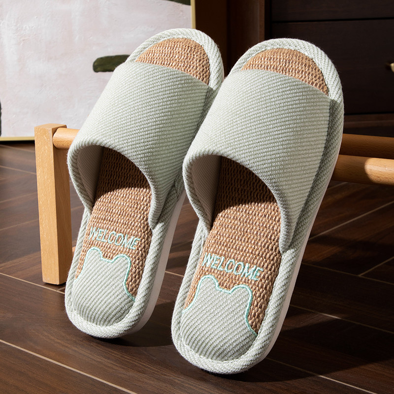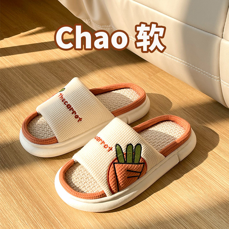 亚麻拖鞋男女室内家用家居情侣吸汗防滑四季静音外穿凉拖网红可爱