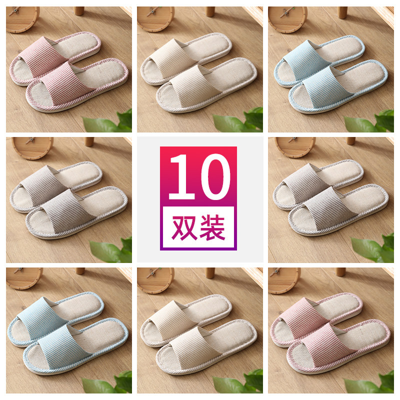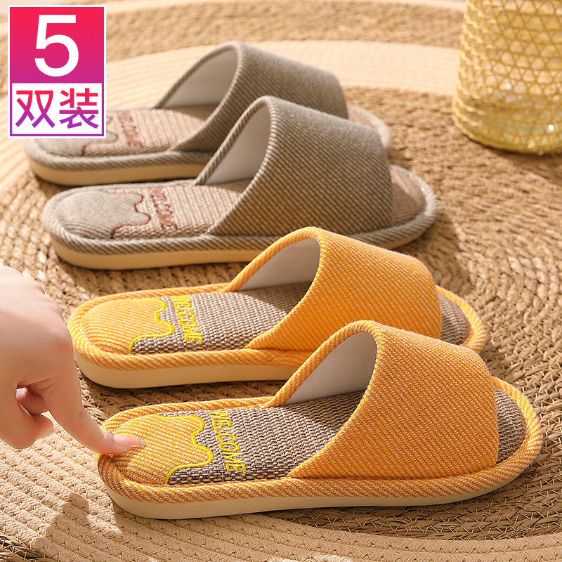 5双装四季家居客人拖鞋室内棉亚麻布女居家家用防滑批发地板凉拖