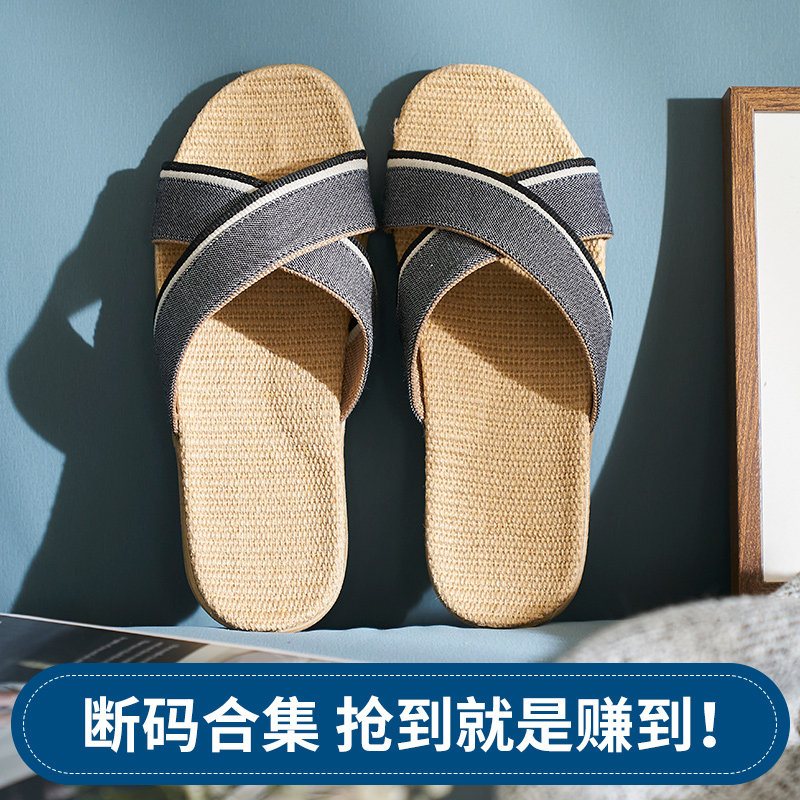 清仓!远港亚麻拖鞋男士室内春秋防滑防臭地板居家用凉拖鞋女夏天