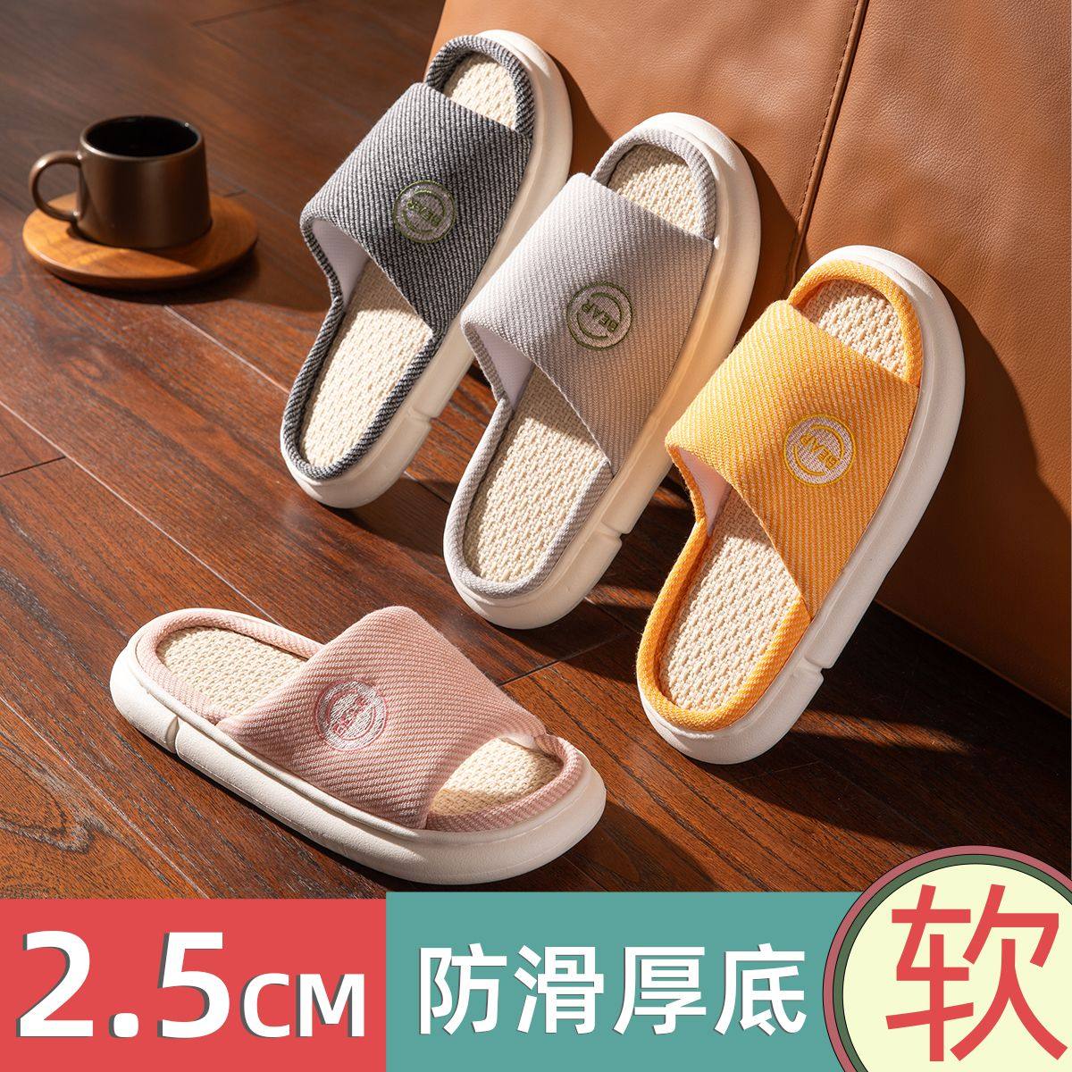 拖鞋2023居家亚麻拖鞋室内防滑软底四季情侣棉麻地板拖鞋春秋透气