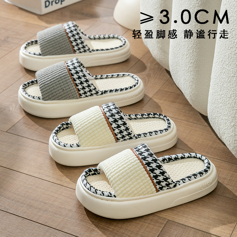 朴西2024款简约亚麻拖鞋女室内家居情侣四季通用拖鞋男款家用吸汗