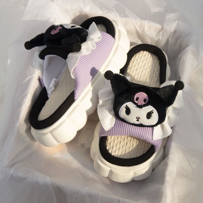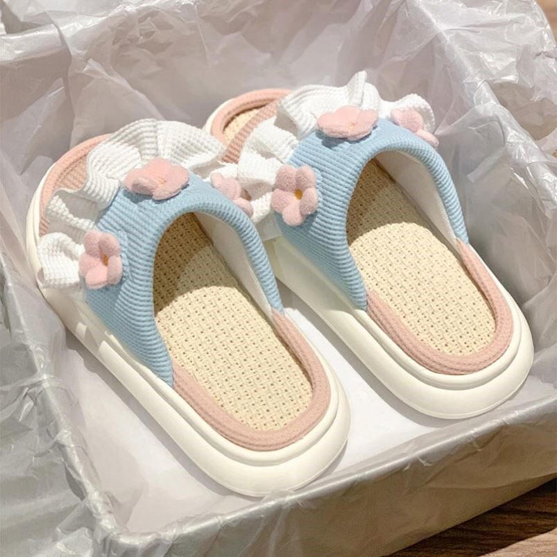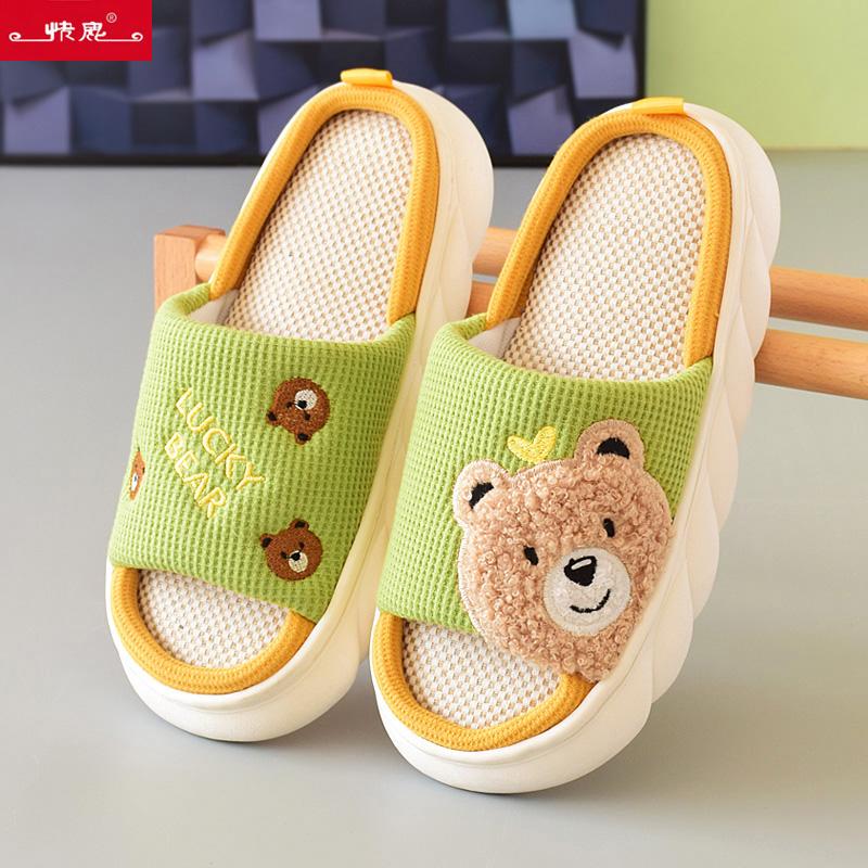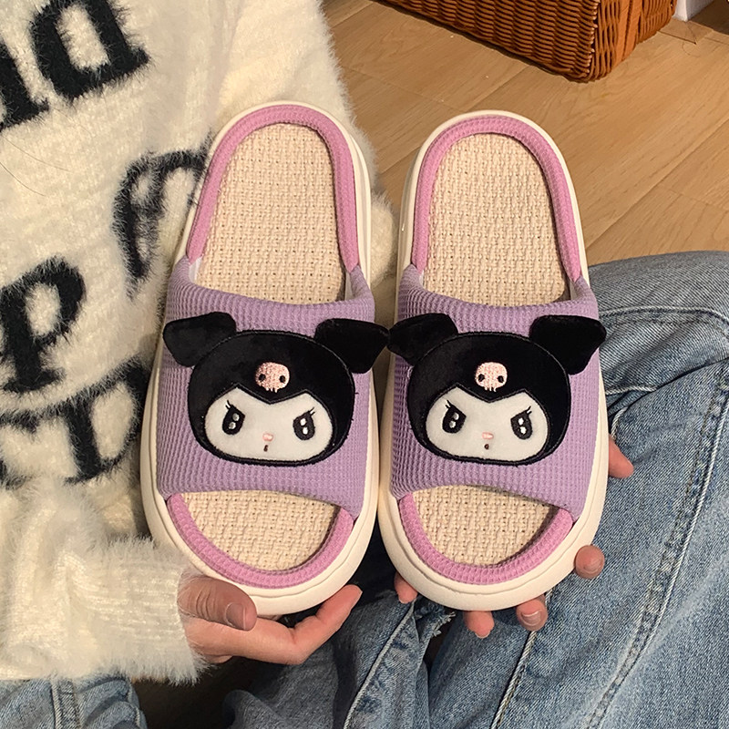 高级感亚麻拖鞋女秋冬卡通少女心ins室内居家厚底四季木地板棉麻