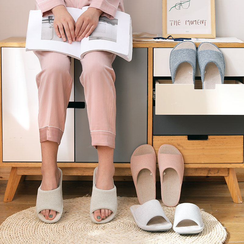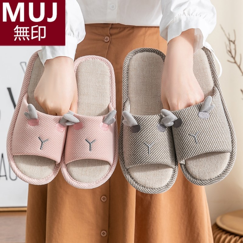 无印MUJ日本春秋夏季亚麻拖鞋女室内家居用软底防滑棉麻情侣静音