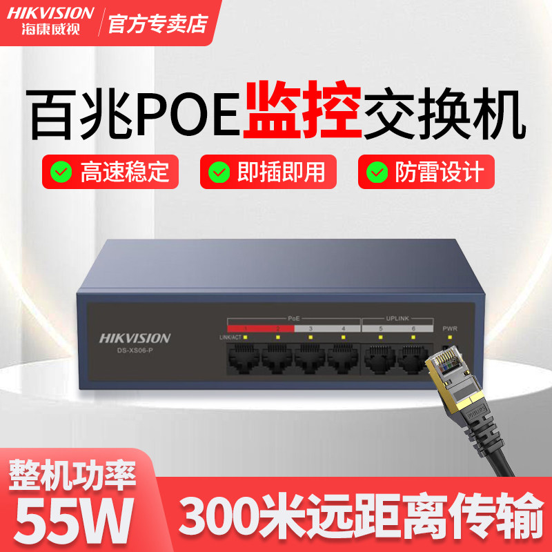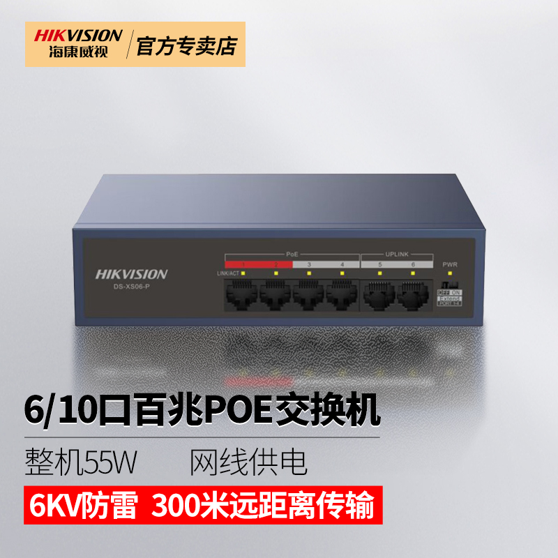 海康威视监控专用标准POE交换机网络供电6/10口安防摄像头用国标