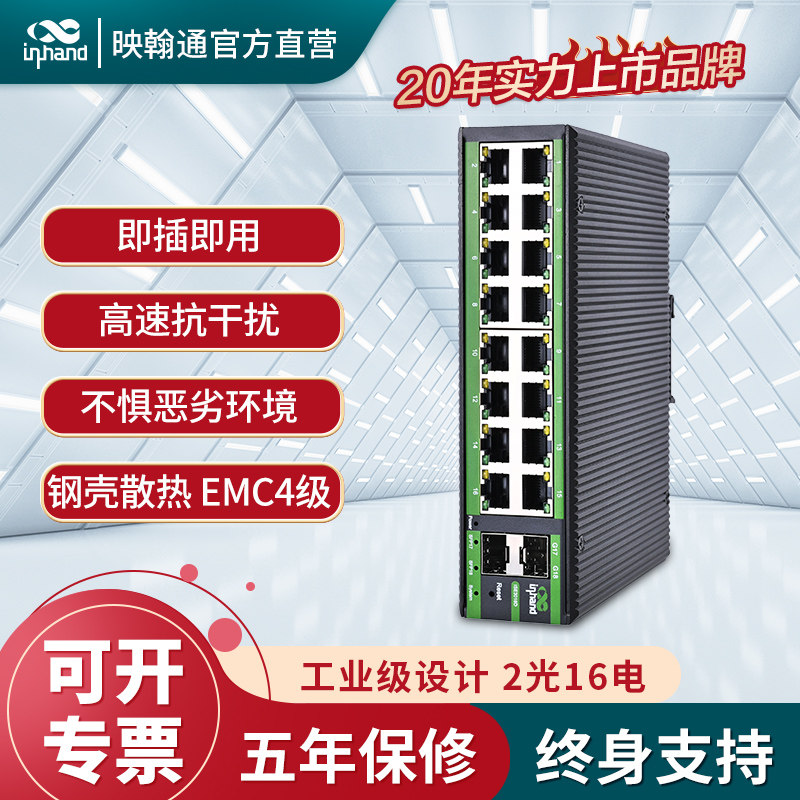 InHand映翰通工业级以太网交换机百兆18口16电2光(千兆)非网管型ISE3018D防雷保护宽压宽温即插即用导轨式