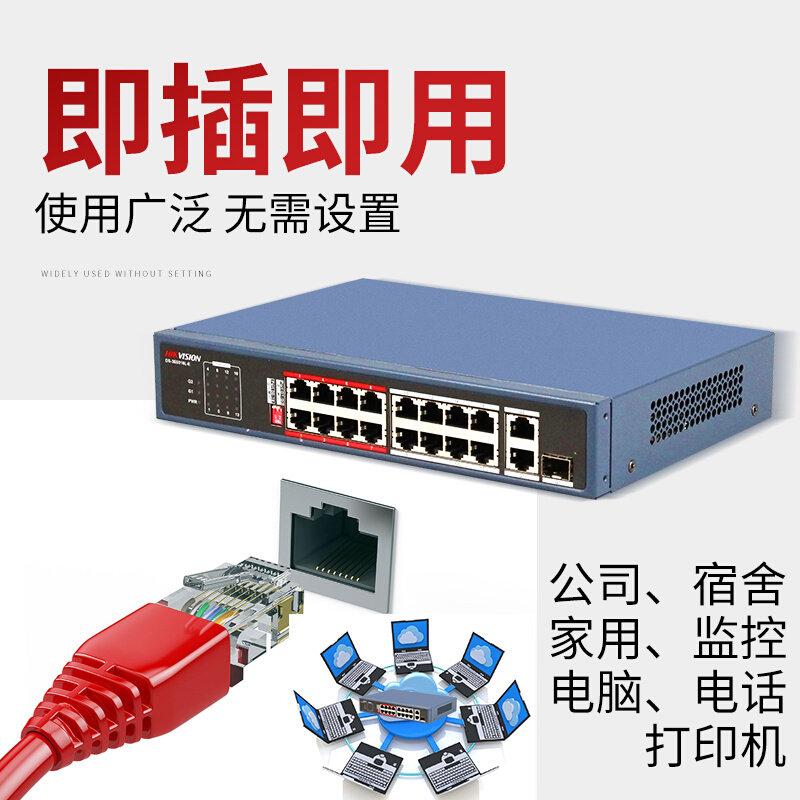 海康威视 5/8/16/24口交换机监控专用全千兆百兆家用路由器分流器