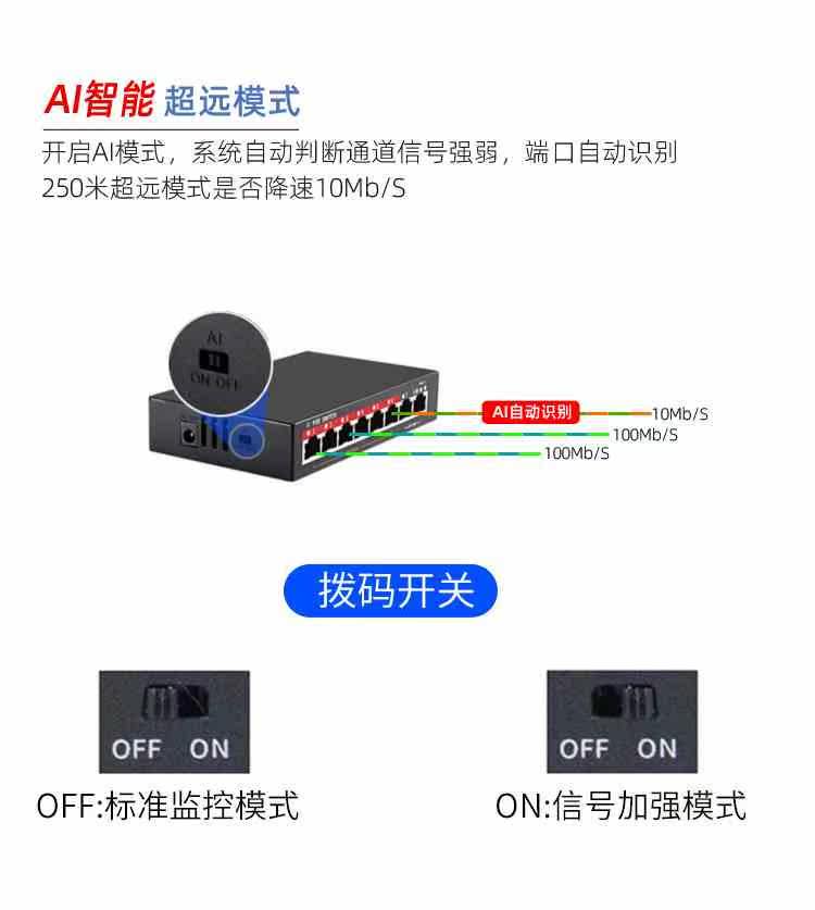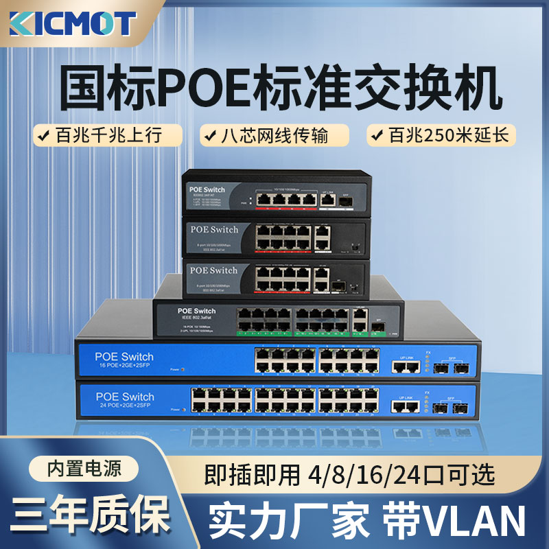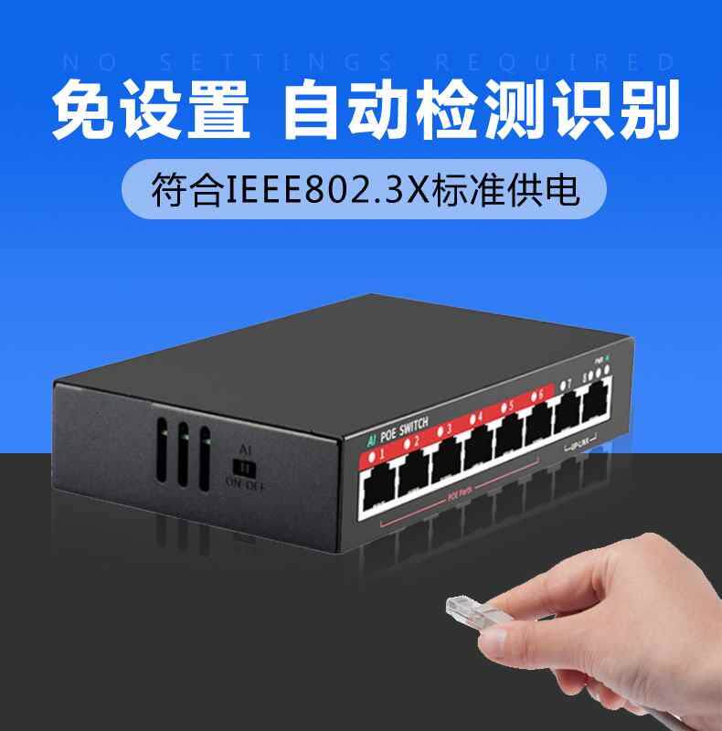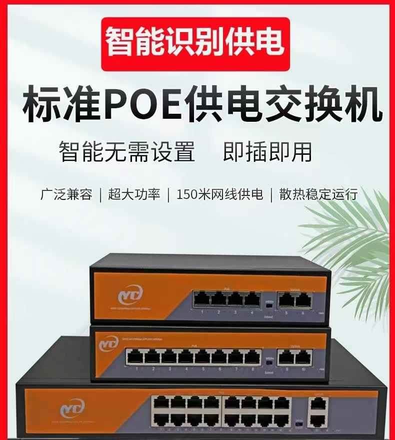 10口国标48V百兆千兆供电监控POE交换机网络小区家用智能免布线