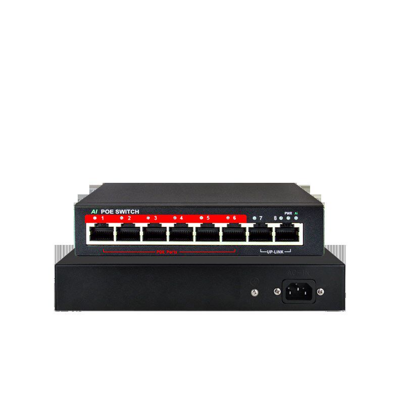 监控专用PO交换机4口8路1E6路上联千兆POE交换机国标48V网线供电