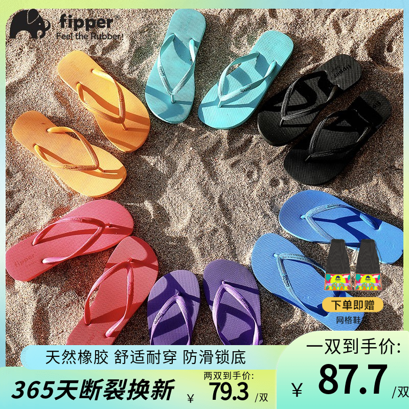 hippobloo泰国乳胶拖鞋夏外穿人字拖女防滑防臭沙滩简约平跟凉鞋
