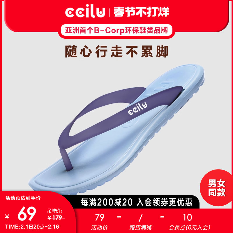 ccilu驰绿人字拖男士夹脚凉鞋女软底Q弹防滑超轻情侣户外沙滩拖鞋