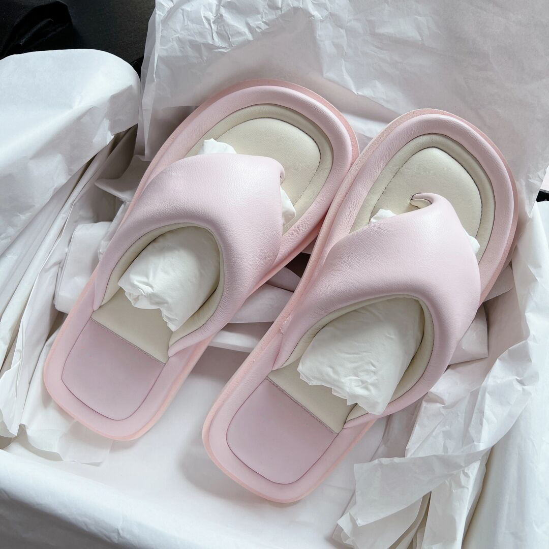 2023新款小香风真皮平底拖鞋女夏外穿拼色夹脚人字拖鞋半拖鞋凉拖
