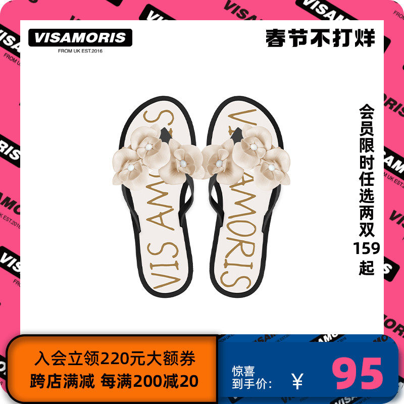 英国visamoris允莫苏女鞋山茶花秋季拖鞋凉鞋凉拖人字拖果冻鞋