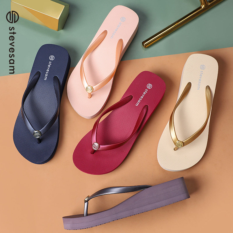 2023新款厚底人字拖女夏外穿防滑坡跟夹脚中跟增高海边沙滩凉拖鞋