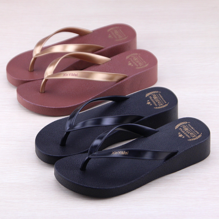 信意美人字拖女夹脚凉拖鞋女夏外穿时尚防滑软底坡跟中跟浴室沙滩