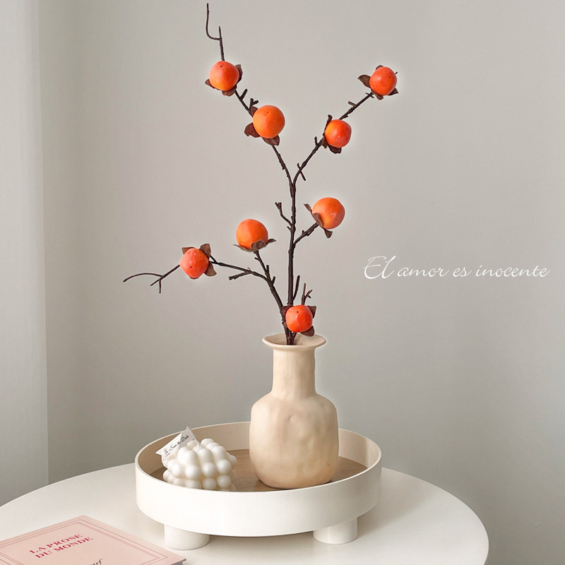 柿柿如意 仿真柿子果实树枝花瓶摆件仿真花假绿植客厅插花装饰