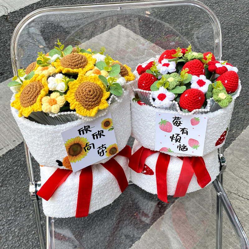 女神节成品编织毛线花仿真柿子草莓花束平安喜乐女友生日礼物闺蜜